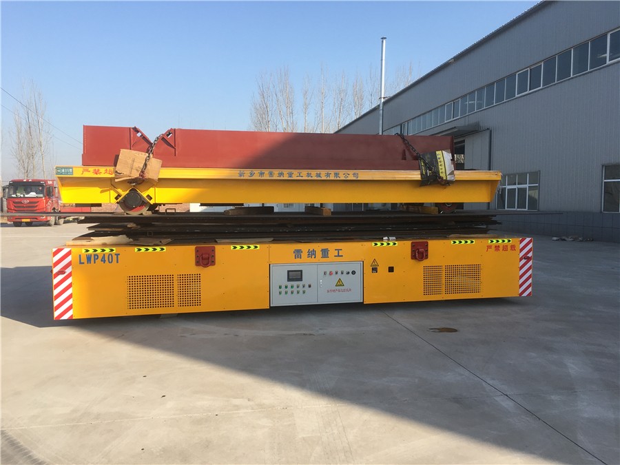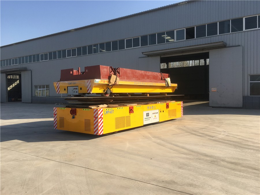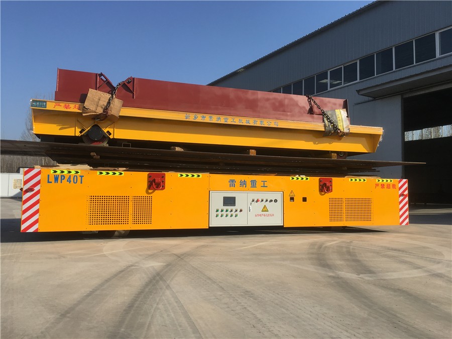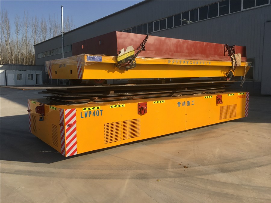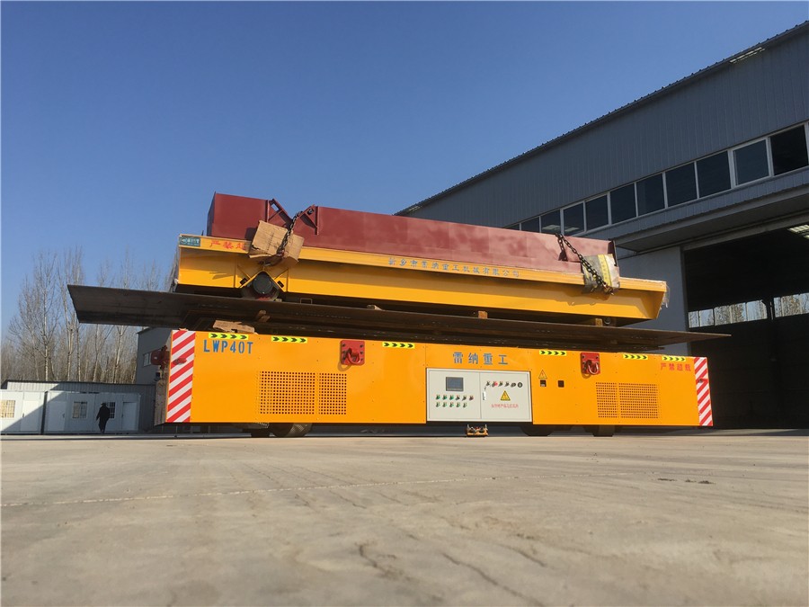 整車(chē)載重40噸,無(wú)軌膠輪運輸車(chē),車(chē)體增加雷達避障功能,推桿遙控操作,無(wú)極調速。